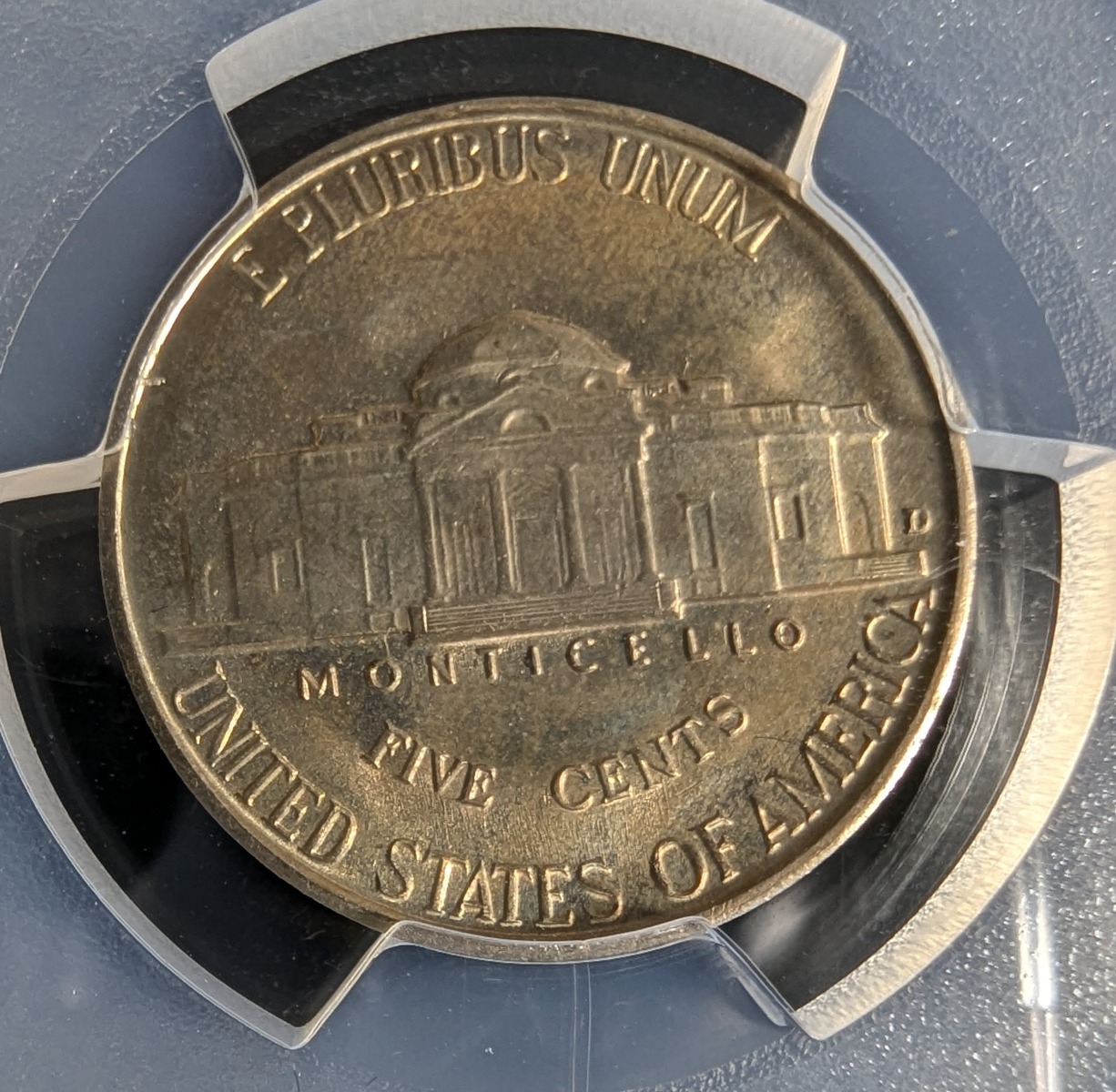 Every once in a while you get something back from a third party grading company that just makes you scratch your head. Below I present to you a Brilliant Uncirculated 1940-D Jefferson Nickel. Not a particularly rare coin, with over 43 Million of them minted, and over 100,000 estimated to survive in Mint State according to PCGS Coin Facts.